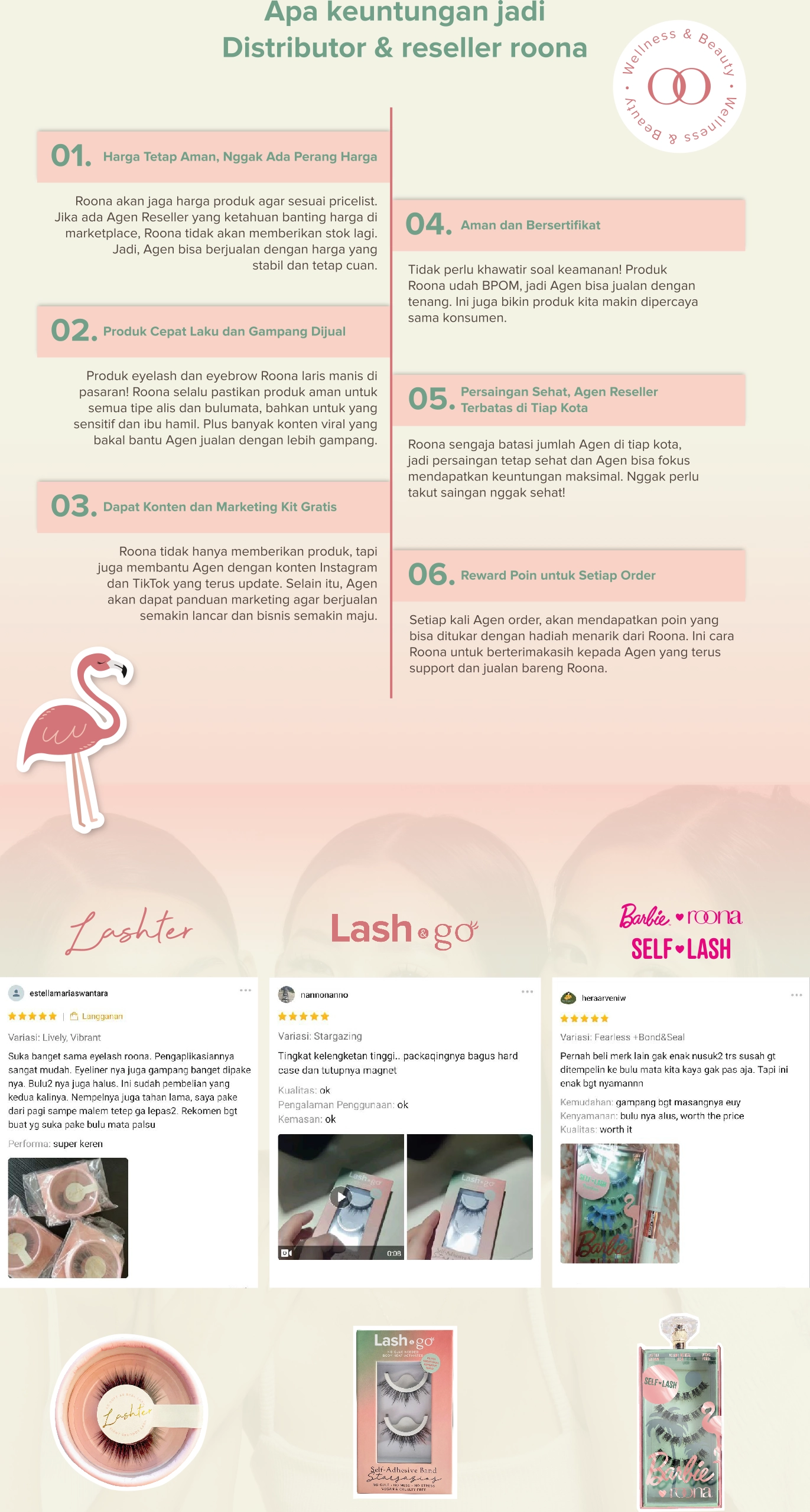 Produk eyelash dan eyebrow Roona laris manis di pasaran! Roona selalu pastikan produk aman untuk semua tipe alias dan bulumata, bahkan untuk yang sensitif dan ibu hamil. Plus banyak konten viral yang bakal bantu Agen jualan dengan lebih gampang.